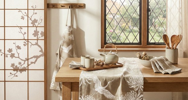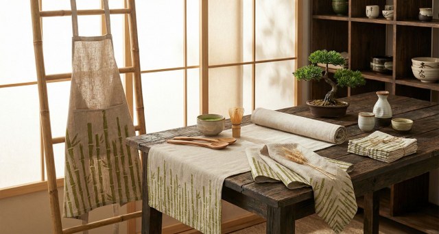 This is a collection where the rustic elegance of natural fiber meets the disciplined beauty of Kyoto’s historic gardens. Crafted from crisp, breathable linen that only grows softer with time, each tea towel, apron, and napkin is adorned with minimalist prints that evoke the stillness of nature.