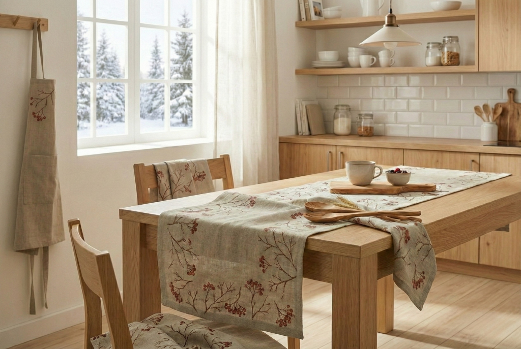 This collection is born from the quiet of early morning,that precise moment when the air is crisp, and the world feels motionless. . Designed for the modern sanctuary, these linens bring a breath of fresh air into the culinary space, grounding the home in calm, deliberate beauty.
